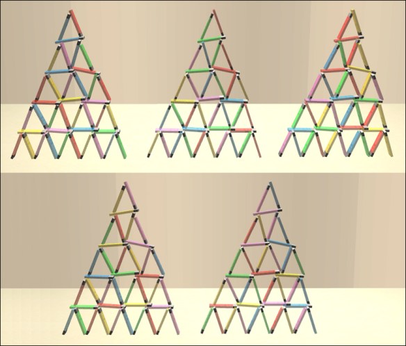 In this set, you have a single chip, two chips, four chips, a pile of chips, and a tower of chips (quite a feat of engineering, that 😉 ), and they all have five recolours each.