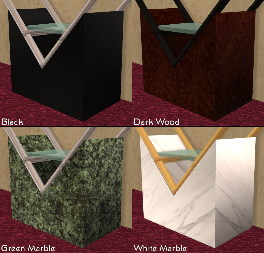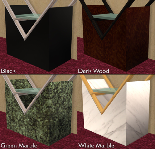 The bookcase comes with three recolours for the frame and four for the stand: