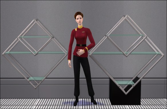 I’m still working on my next story; now it’s starting to come together and is moving along at a steady pace, but it’s been like pulling teeth with molasses. Or something. 😛 I also need to make quite a bit of stuff for the screenshots – like that TWOK uniform up there. (The model is a very young and very green Irina, BTW. It’s her fault I need those uniforms. ;)) But that’s also coming along nicely, so that’s good.