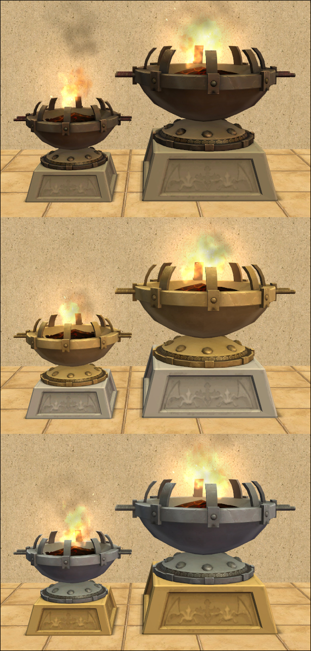 These, too, are repositoried, so the large brazier is slaved to the small one. Also, the large brazier uses no less than three different effects to get a decent-sized fire, so if your computer have problems rendering effects, you might want to give it a pass (hence why this is the slave and not the master).