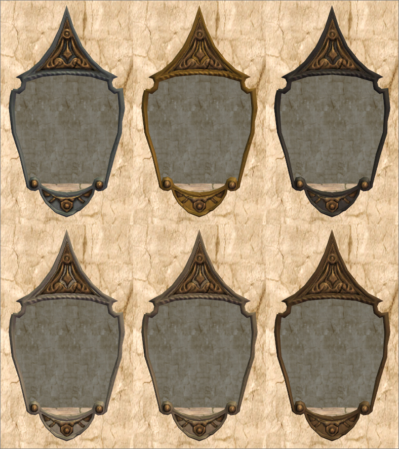 The frames of all the mirrors come in Pooklet’s eighteen naturals + Time Bomb. Oh, and all the frames have been bump mapped, even if it isn’t always obvious.