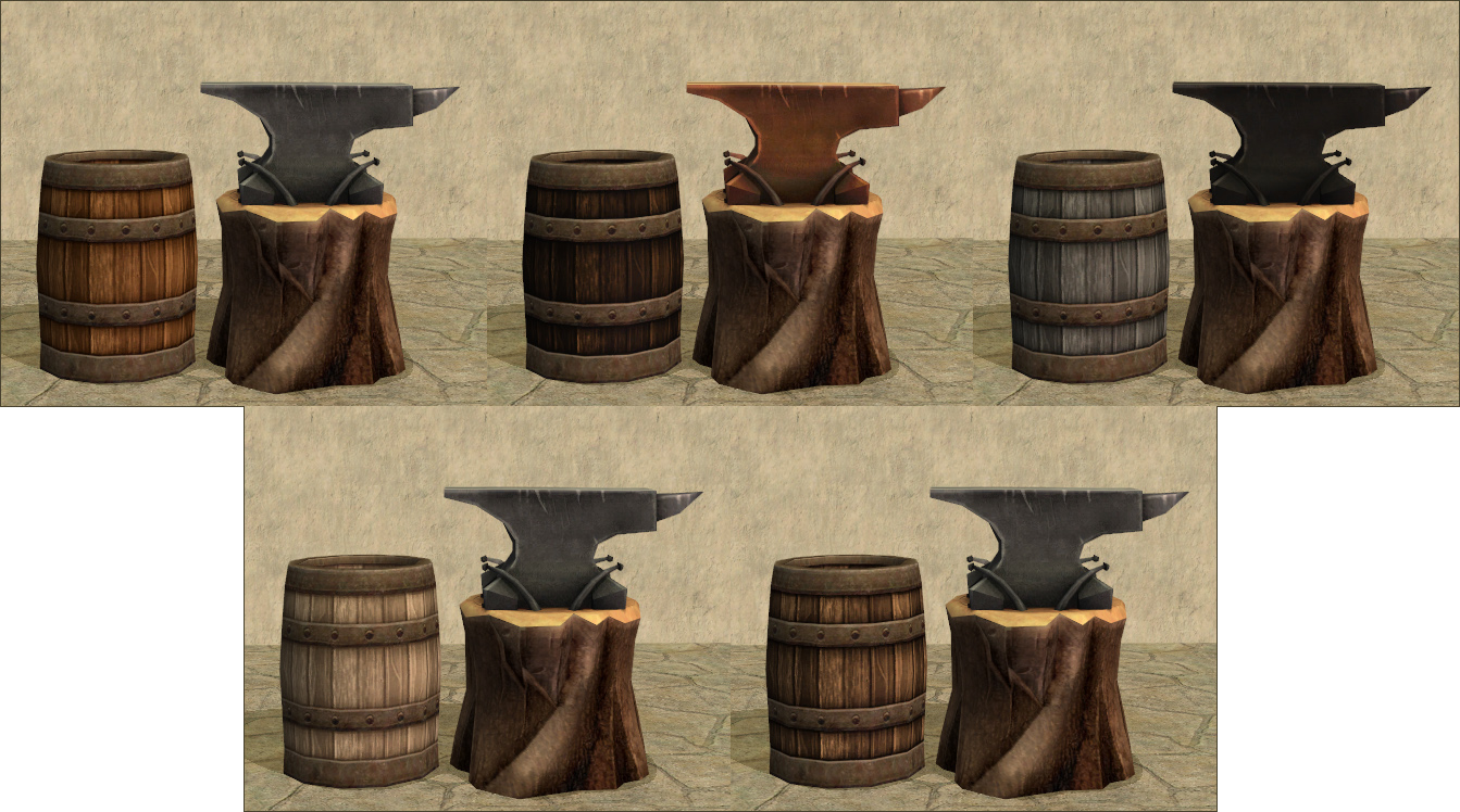 The anvil comes with three recolours for the anvil itself and five for the water barrel: