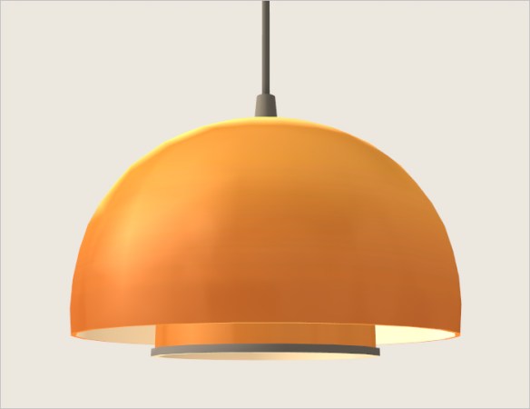 Up close, the lamp looks like this: white inside (the edge is white as well, it just looks grey in the screenshot), coloured and recolourable outside. The mesh is Lonesome Orange, BTW; that colour comes quite close to that of the RL lamp.