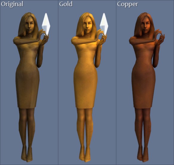 The floor version of the Bella statue comes in three colours: the original brass, gold and copper. There’s also an invisible recol of the diamond. (All recols are part of the .package file, BTW, just so you don’t think I forgot to add them to the zip.)