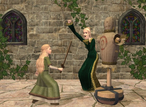 I’ve also cleaned up the interactions a bit (you no longer get the “watch” option if you click on the dummy while the active Sim is fencing, for one thing) + have fixed some mega bork with the child sword selection. Also fixed the swords so they actually work with v. 2.5, for those of you who have both versions. (Yeah, I was seriously sleeping on the job when I tested these. ๐Ÿ˜ณ )