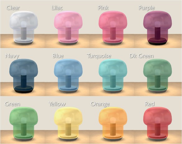 The glass comes with fourteen recols, including the mesh, in (approx) the same palette as my IKEA tealight holders (also threw in a dark green one for the Brits – Swedish IKEA doesn’t have that colour, we only get opal white and purple π¦ ). The foot has two recols, white and black.
