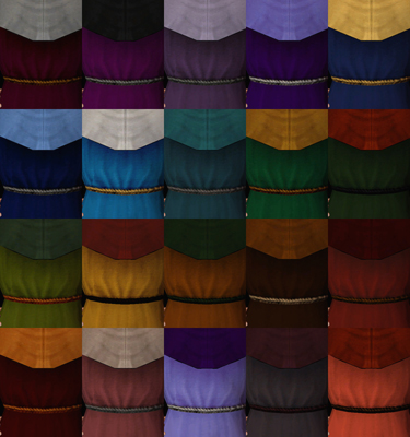 These are sooo amazing! So many colors. I’m a huge fan of the original outfit; all my minstrels wear it, and this is a great addition for that one minstrel who lags behind the rest of the troupe strumming idly on his lute.
