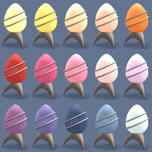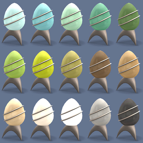 The lamps have the same recols for the base and the glass (well, in my mind, the egg-shaped part is glass, anyway) as the in-game sculpture, plus another 30 recols in Anna’s colours (love that palette!) for the glass.