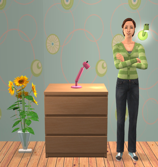 I was browsing the IKEA catalogue (as one does) and came across this adorable children’s table lamp (that also has a Japanese wall version, and knew at once that I had to have it for my little Simlets. So I simmed it. πŸ™‚