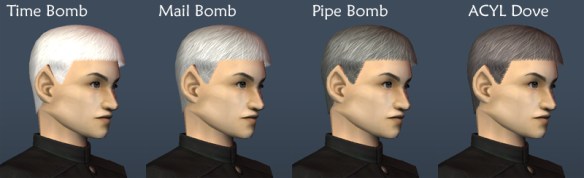 It comes in nine binned and familied Pooklet colours (blacks and browns + a Volatile in case someone wants to make additional recols) and four custom greys. As seen in the title pic, the hair is for all ages, but the grey recols are for adults and elders only. (Speaking of which, I use a mod that increases the lighting in Bodyshop, which is why the bloom on Time Bomb looks… really bad. It doesn’t in game, I promise.)