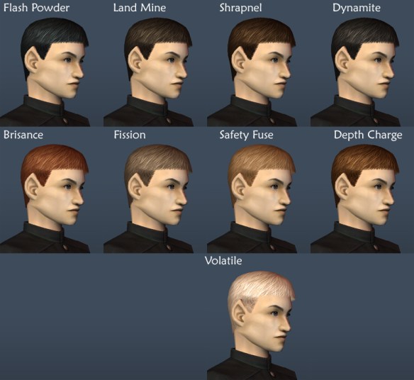 This hair I’d originally uploaded to the now-long-dead Sim Trek forum. When Sim Trek went out of business the plan was to reupload it here, but for some reason I never got around to it. Then I was going to reupload it with some shiny new Pooklet recols, to match my Vulcan hair for females, but I never got around to that, either. ๐ณ But then, a little while ago I got a comment asking if this hair was available, since the original upload didn’t survive Sim Trek’s demise. The new recols I’d planned were all finished, I’d even taken screen shots and everything, so I decided to de-hiatus for a moment and upload the darned hair already. ๐
